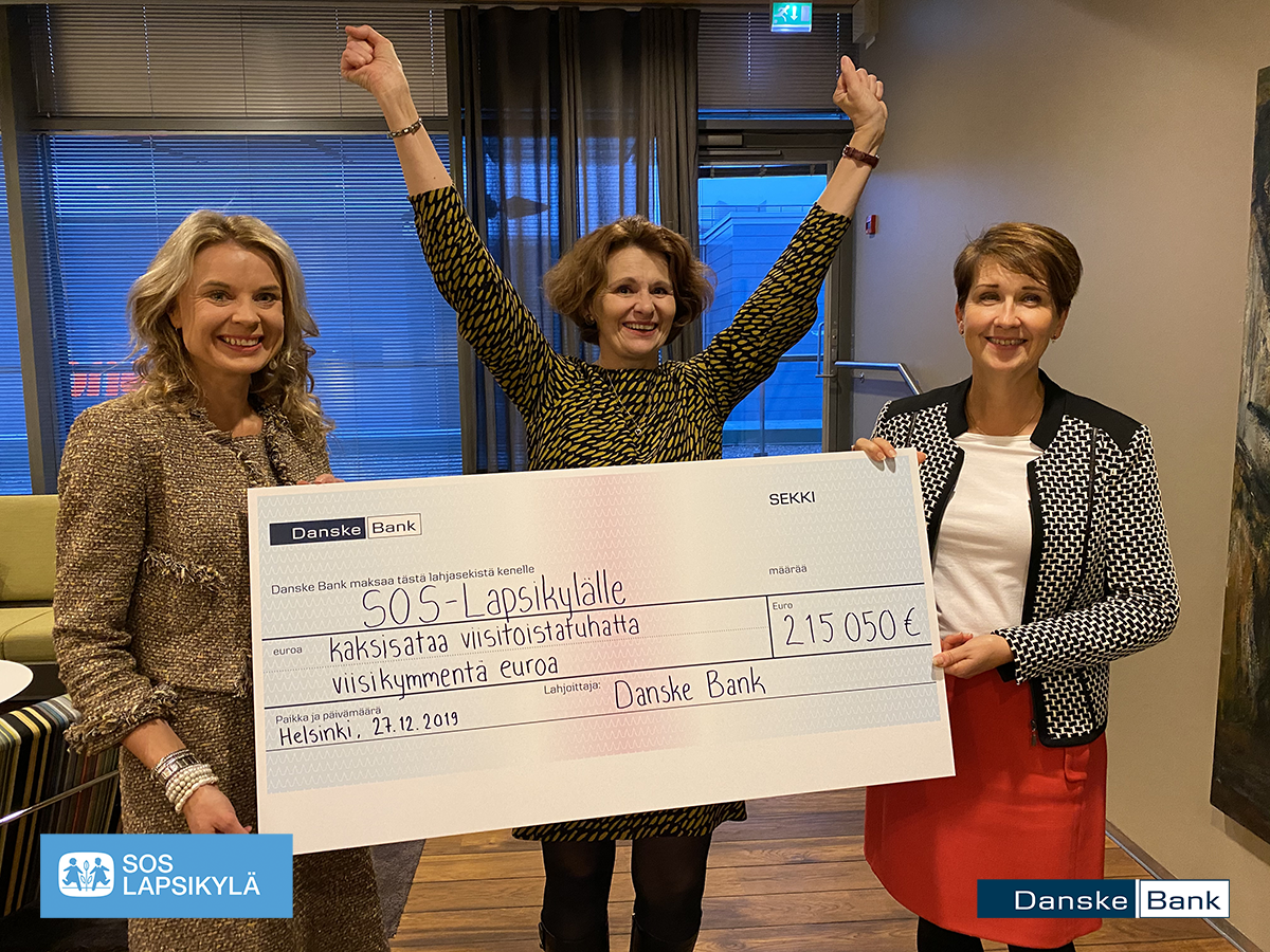 – Yksi lahjoitus ei ratkaise ongelmia, mutta voi nostaa niitä esille. Olen iloinen, että voimme olla mukana tukemassa SOS-Lapsikylän toimintaa. On tärkeää, että lapsille voidaan tarjota yhtäläiset mahdollisuudet taloudelliseen mielenrauhaan, sanoo Danske Bankin maajohtaja Leena Vainiomäki.