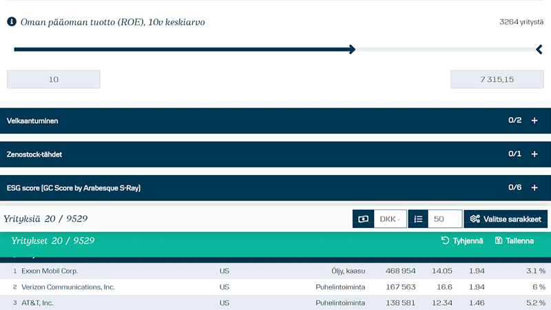 Etsi ja löydä sinua kiinnostavia osakkeita esimerkiksi seuraavien kriteerien pohjalta: